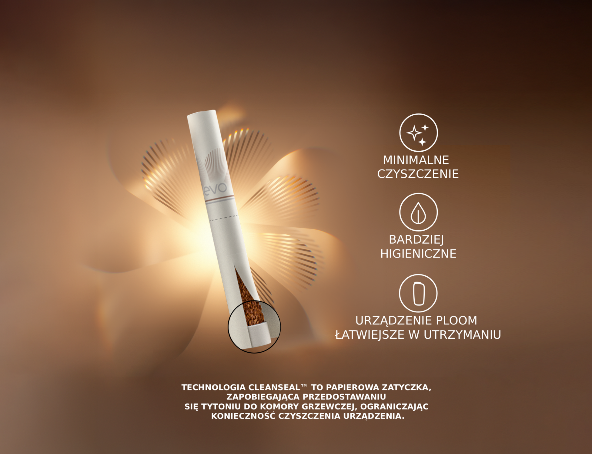 Nowe wkłady EVO oferują innowacyjną funkcję CleanSeal™, która zapobiega przedostawaniu się resztek tytoniu do urządzenia, zapewniając jeszcze czystsze doświadczenie podgrzewania i ograniczając konieczność czyszczenia urządzenia do minimum.