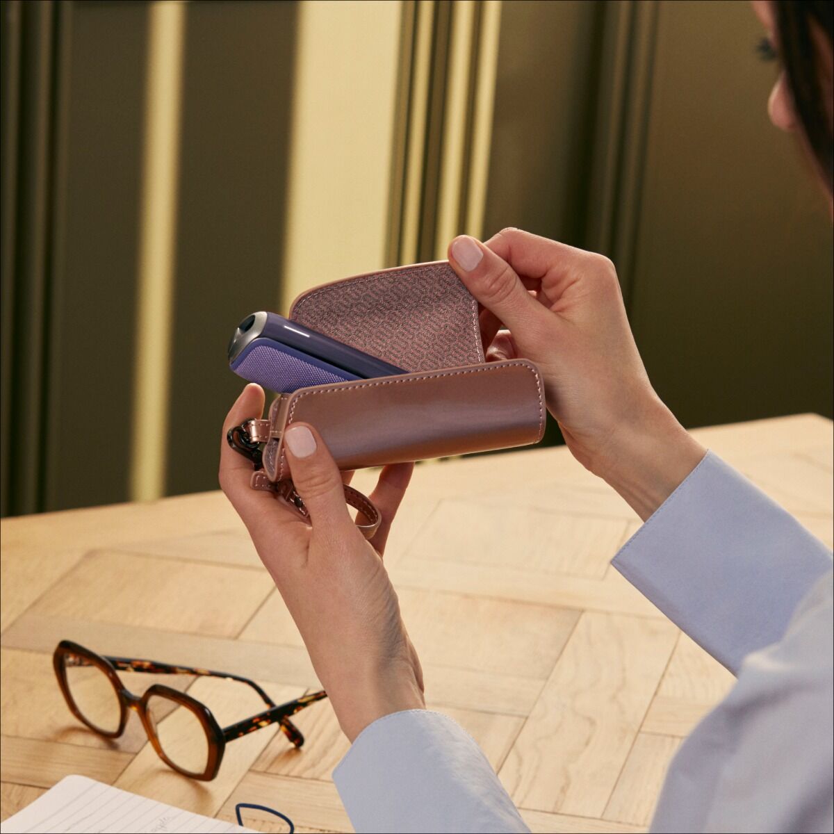 Miej swój Ploom AURA zawsze pod ręką dzięki naszemu eleganckiemu etui Solo. Zaprojektowane z myślą o ochronie urządzenia i stylowym wyglądzie etui dostępne jest w czterech różnych materiałach i kolorach. Wyposażone zostało w wygodny odpinany pasek.